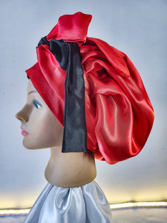 Bonnet en satin FICELLE. L - ROUGE