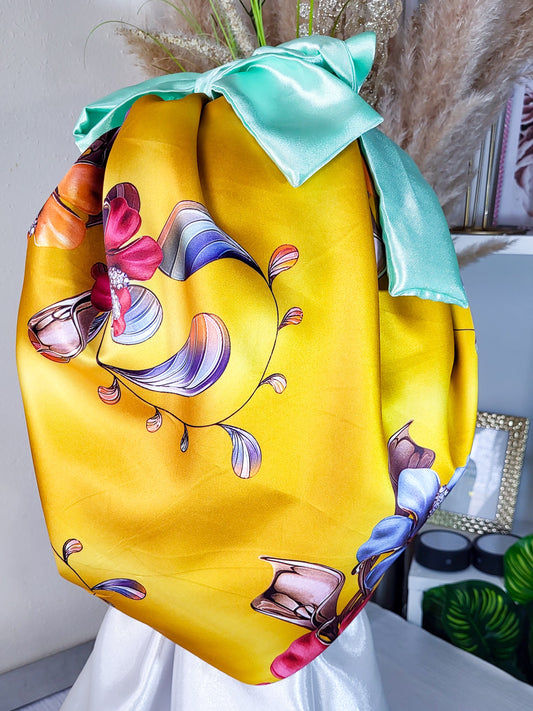 Bonnet en satin FICELLE. L - floral jaune