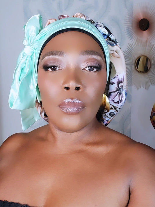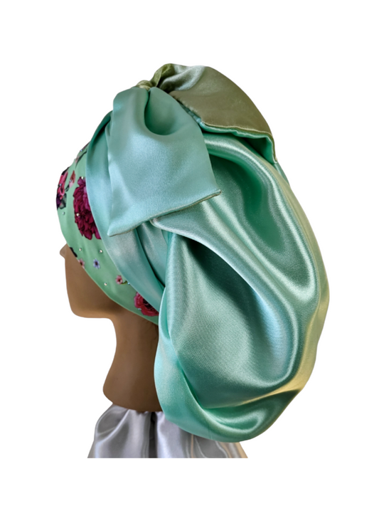 Bonnet en satin FICELLE. L - nude turquoise