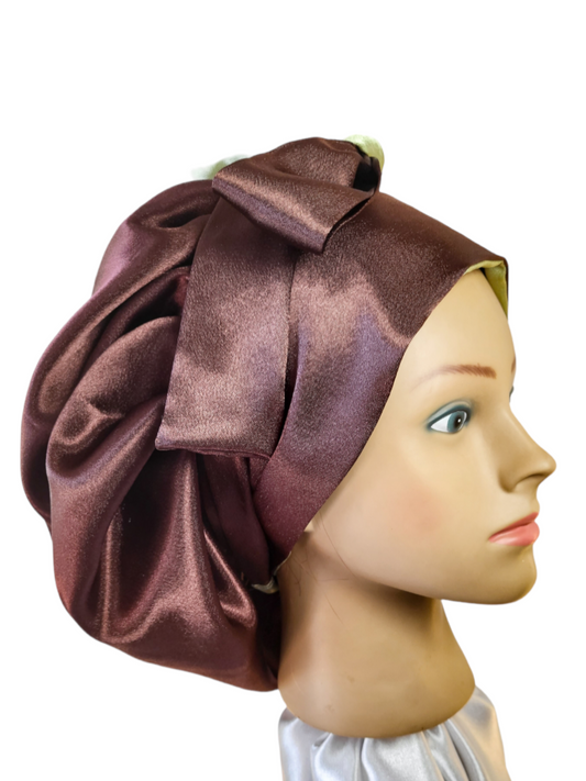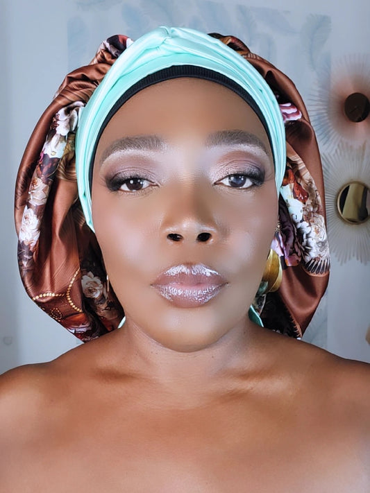 Bonnet en satin FICELLE. L - floral marron